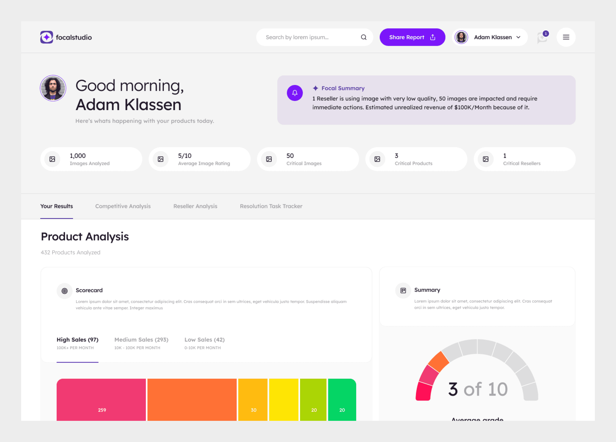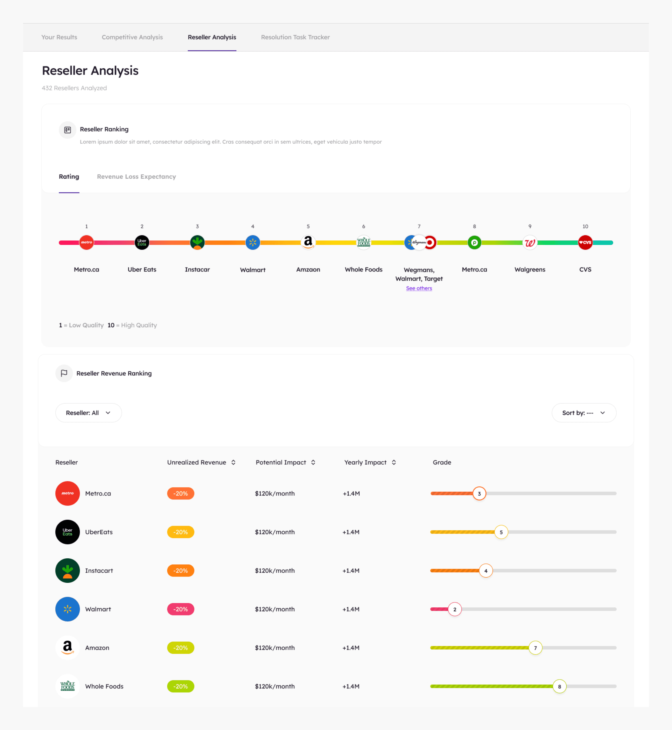 We designed benchmarking functionality that allows the user to easily see what their competitors are doing on a macro and micro scale. Again, ensuring that actionable steps can be taken by the user to refine.