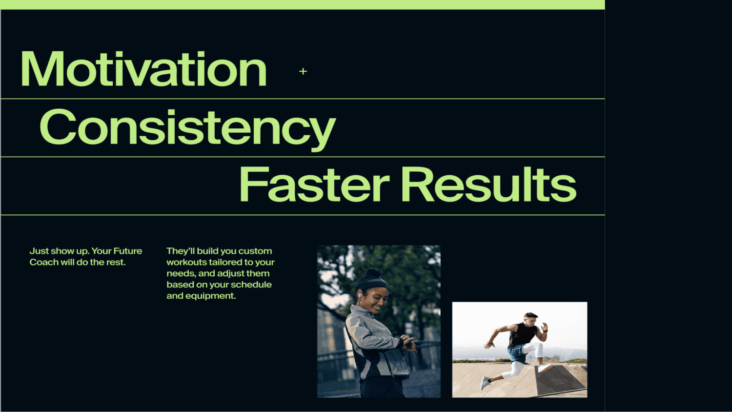 FW leveraged the Brand Strategy and plethora of creative assets to provide Direction for key touchpoints like the website homepage. Bringing the coaches to the forefront of the narrative highlighted Future’s unique selling point.