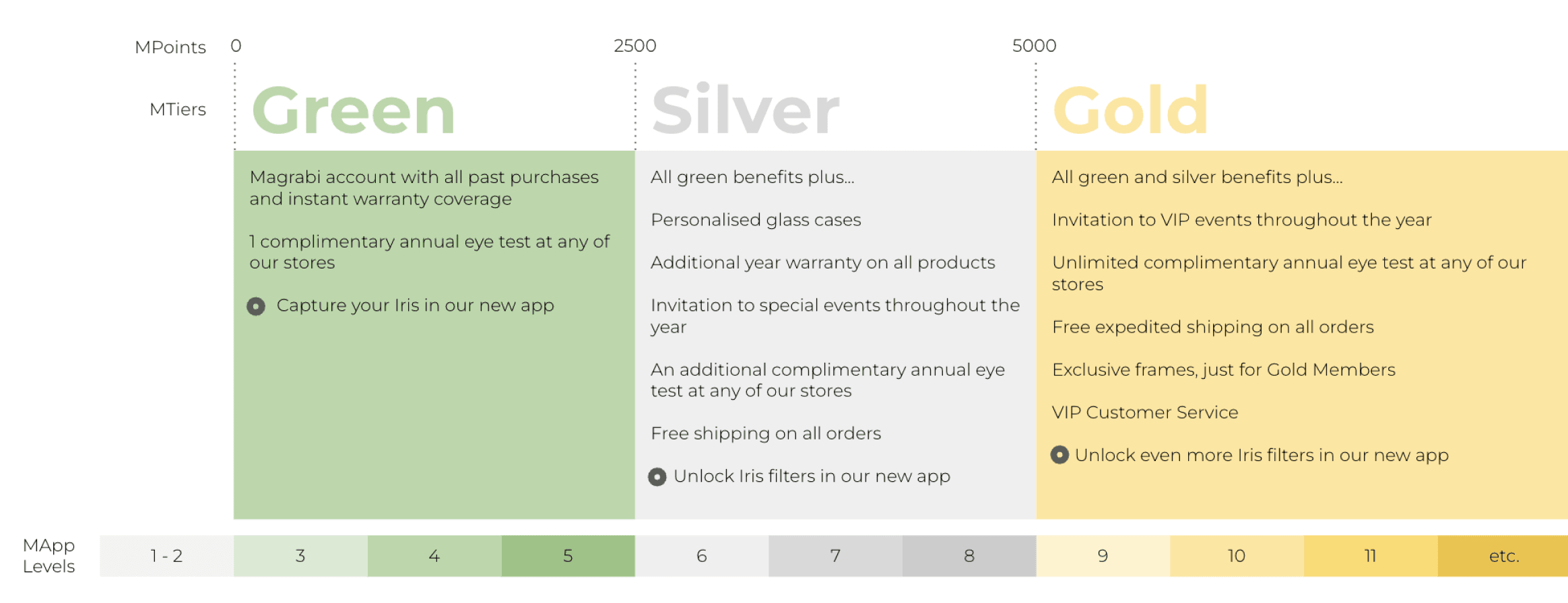 We researched existing loyalty programs, from fashion brands, to healthcare to banks and airlines. Picking elements that excel, we proposed and enabled a transformation into a truly modern, and future-proof model that enables a new stage of growth for the Magrabi brand.