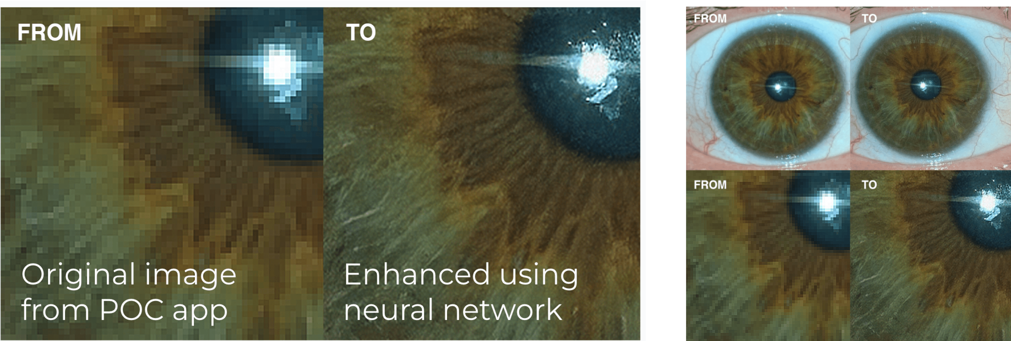 Our tech team developed an artificial intelligence tool that can enhance quality of iris photography. It would then also allow for creation of generated artwork our of each unique iris as part of loyalty marketing campaign (note that this is 2019).